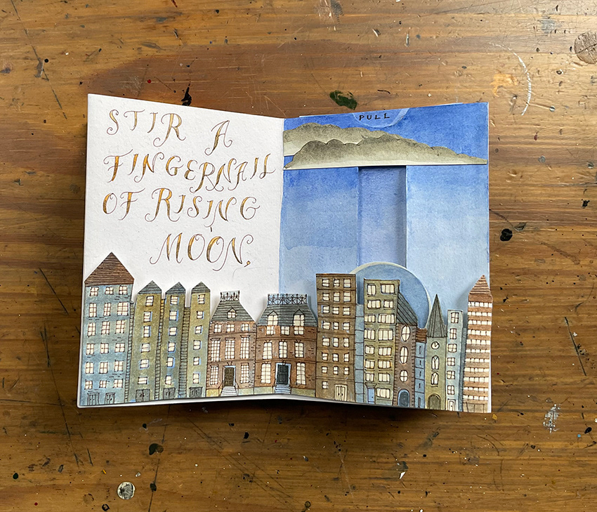 A hand-painted and lettered pop-up book for a little Halloween magic. If you say the right words at the right time and in the right order, perhaps you'll receive an invite to the Witches' Gathering.