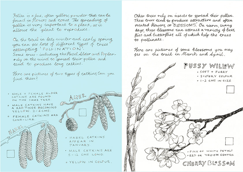 The field guides for children contained activities, interesting facts and things to spot on the art and nature walks detailed on the map itself.