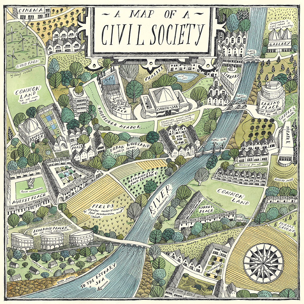 A map in pen, ink and watercolour for the Rethinking Civil Society project run by the University of York and the Lichtenberg Kolleg at the University of Gottingen. The five-year project, funded by the Leverhulme Trust, examines what makes a society ‘civilised’ and what stands to threaten or undermine it. Prominent figures in civil society – politics, literature and the arts, education, charities, NGOs, religious bodies and community associations - were asked to give their thoughts. This was my contribution and it now sits amongst pieces by other contributors ranging from Anthony Gormley, David Shrigley, Ken Loach, Andrew Motion, Caryll Phillips, Rabbi Julia Neuberger and Jim Al-Khalili. You can read more here.